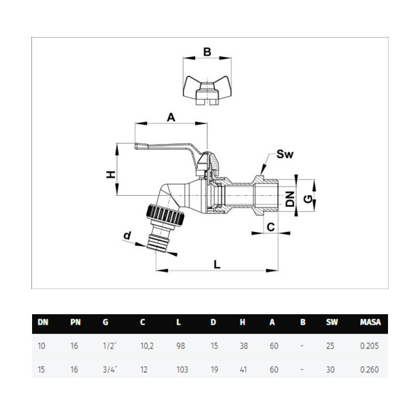 Slavina za perilicu rublja 1/2"-3/4" ITAP (250)