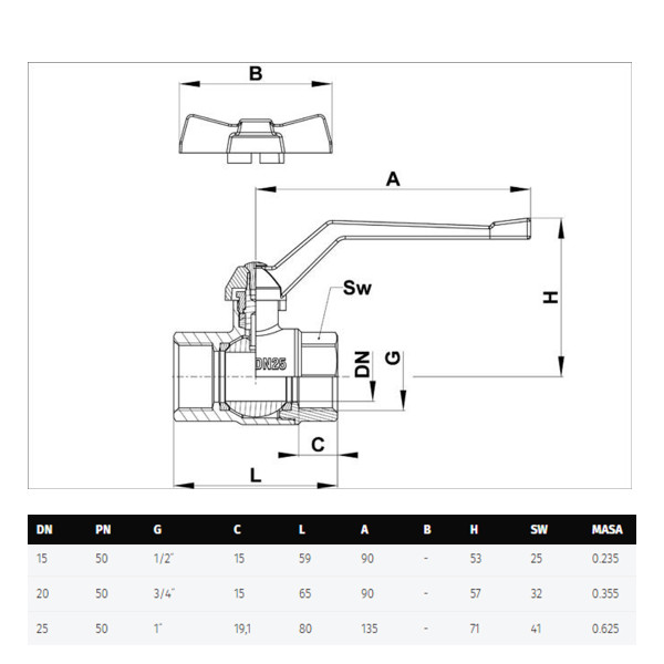 Ventil kuglasti KOVINA CLASSIC LEPTIR