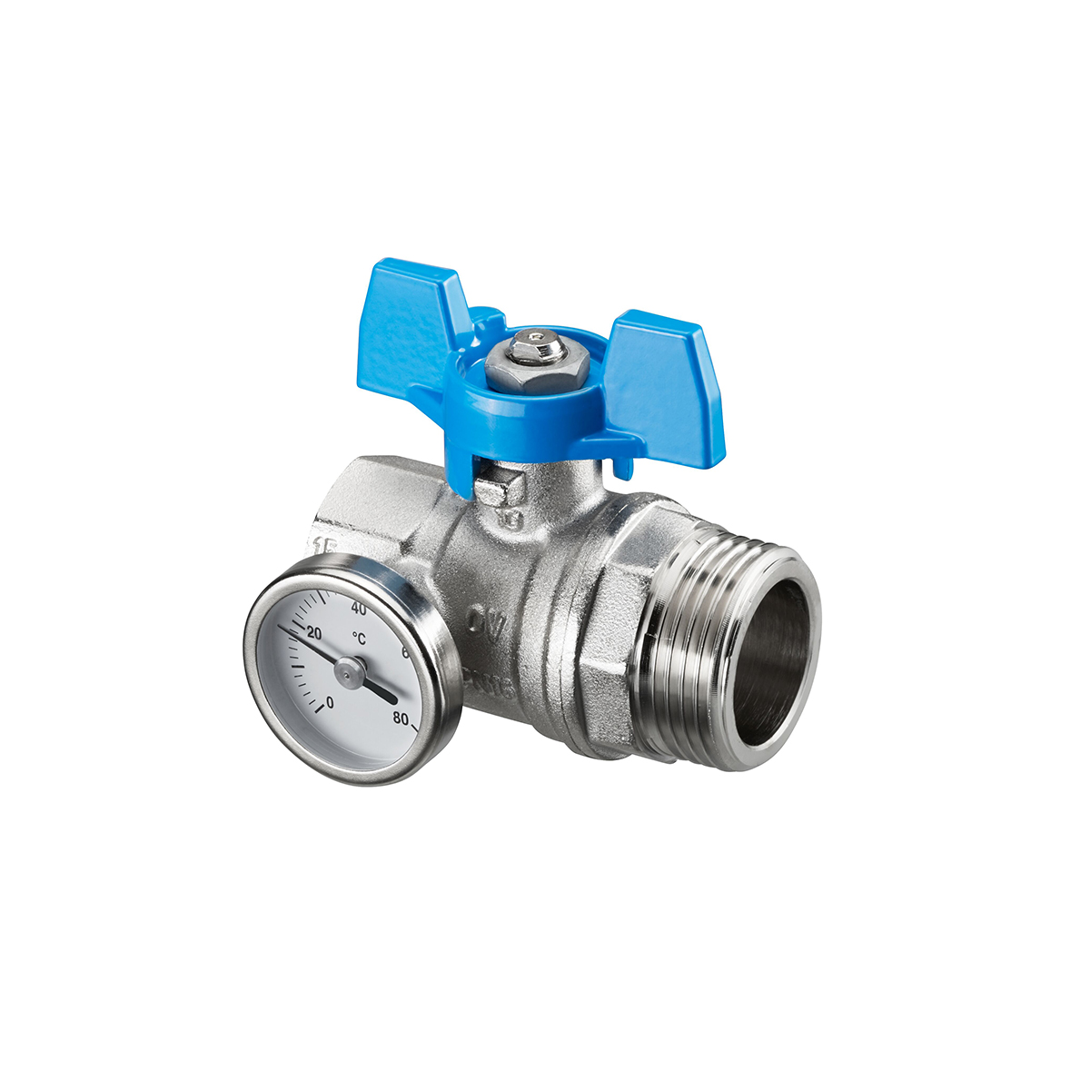 Ventil kuglasti 3/4" s termometrom MŽ (plavi) za razdjelnike OVENTROP