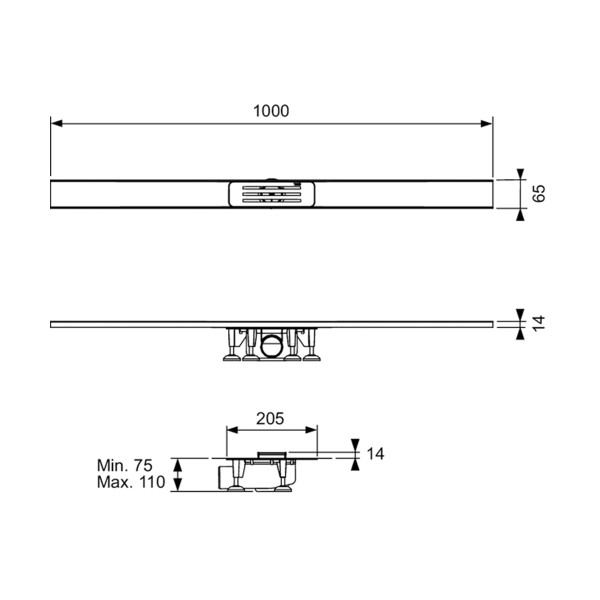 - min. ugradbena visina 75 mm (od donjeg ruba odvoda do gornjeg ruba glazure)
