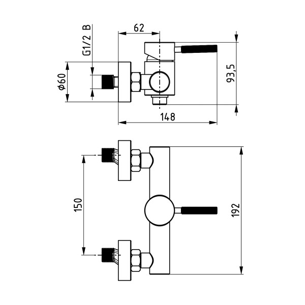 Podžbukna termostatska baterija s 2 funkcije UNITAS