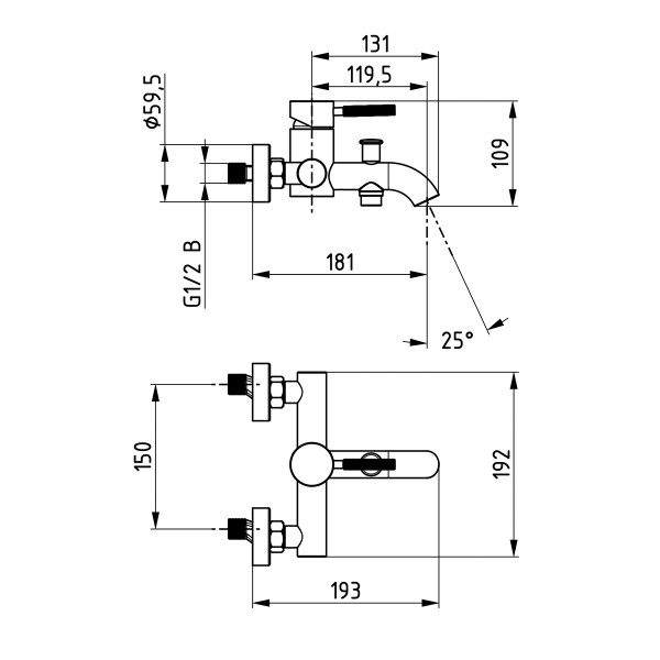 Zidni izljev za kadu krom Rebris S HANSGROHE