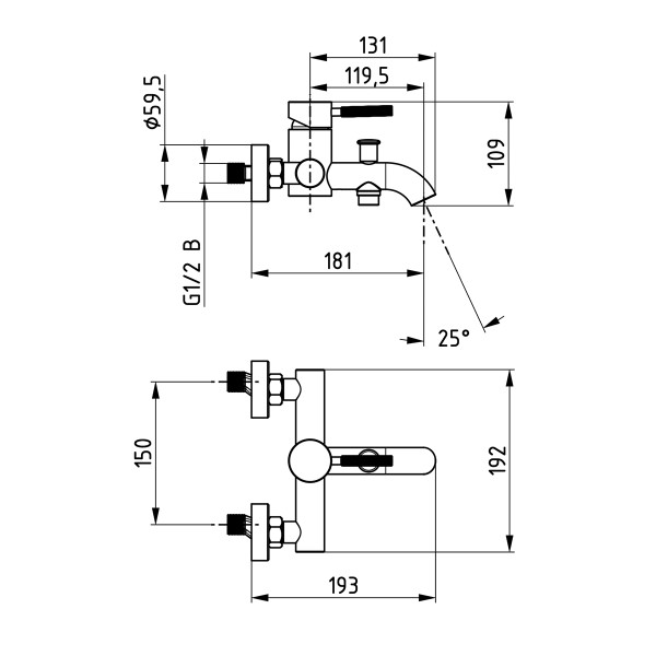 Zidni izljev za kadu krom Rebris S HANSGROHE