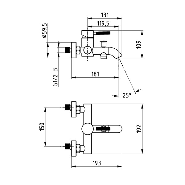 Zidni izljev za kadu krom Rebris S HANSGROHE
