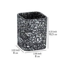 Mat crna šalica impresionira detaljima u bijeloj boji koji oduzimaju dah i svojim jednostavnim bojama. Skladno dizajnirani, kupaonski dodaci savršeno se uklapaju u različite kupaonice i mogu efektno stajati na umivaoniku ili praktički u kupaonskom ormariću. WENKO čašica za četkicu za zube izrađena od čvrstog poliresina također je idealno rješenje za atraktivno pohranjivanje kistova za šminku.Zahvaljujući svom luksuznom izgledu, zajamčeno je apsolutni privlačan pogled na svakom toaletnom stoliću! Bilo kao vrhunac u uredu, moderno opremljen u radnoj sobi ili dobro pozicioniran u drugim sobama u svoja četiri zida, fleksibilni svakodnevni pomoćnik idealan je i kao spremnik za olovke. Inače, teraco, koji izgledom podsjeća na mozaik, potječe iz stare Grčke. Danas još uvijek možete pronaći nadahnjujuću tehnologiju u povijesnim zgradama - posebno u okolici Venecije. Je li ikakvo čudo da se pri pogledu na graciozni red automatski osjećate kao da ste na odmoru! Stoga stvorite vlastiti dom za odmor s toaletnim setom koji pripada seriji Terrazzo i odgovarajućim dozatorom sapuna.